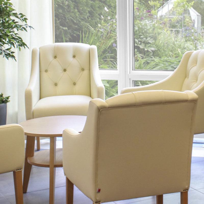 Kvalitetskraven är höga. Brukare skall kunna sitta skönt och obehindrat i våra möbler.Höjd och djup är anpassade för att nå bästa komfort.